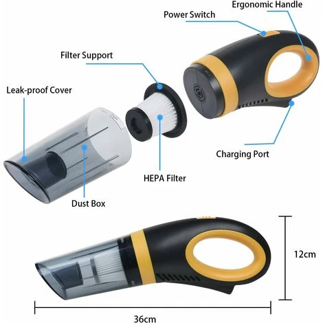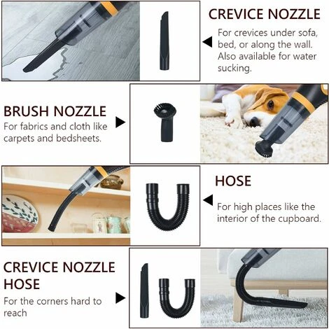 ?Multifunctional Accessories?Portable handheld vacuum cleaner with multiple functional accessories: long hose, long nozzle, brush nozzle, filter, 2 adapters. cordless car vacuum cleaner and its accessories allow you to clean efficiently