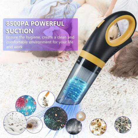 ?Multifunctional?8500PA car vacuum cleaner has strong suction power & can be used for a long time. Car vacuum cleaner can be used to clean dust, hair, dirt, cat litter, pet hair, etc. You