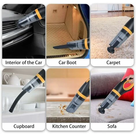 ?Super Suction & ?Quick Charge Technology?Car kitchen vacuum cleaner uses 2000mAh large capacity lithium-ion battery and 120W super powerful motor, rated at 28000rpm and