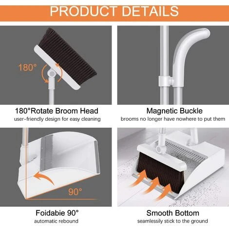 [Detachable handle design] – This broom is designed with a detachable handle and the dustpan. dust has a large capacity. The height of the broom and the shovel; Dust can be adjusted, allowing you to get up and clean in comfort. No more bending over when cleaning.[Built-in comb design] dust can easily remove hair and lint, dirt. and dust on the broom, and it is not necessary to clean the broom. hand after cleaning floor. Ésave your time to cleaning.[Broom and dustpan set; Humanized Dust] – This broom and dustpan set dust is locked in the open position for easy emptying. The teeth of the comb clean the dirt. and dust on broom bristles. The rubber lip of the broom and dustpan. dust is level with the ground, so use the dustpan. dust to sweep the dust It’s easy.[Small dustpan set; storage broom] – The broom can be attached magnetically to the shovel dust, which is convenient for storage, space saving and easy to clean. displacement. Can be placed around the corner.[Customer Service] We always provide customers with high-quality products and services. If you have questions about brooms and shovels; dust, please contact us and we will do our best to help you.