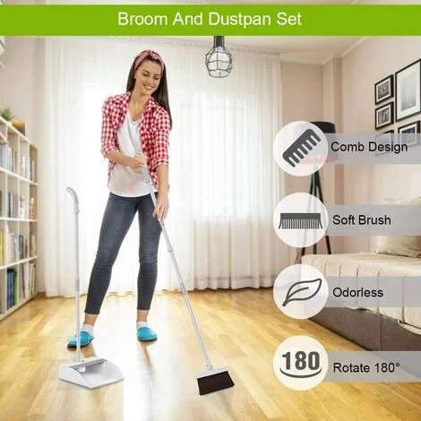 180°Rotating Mop Head】Convenient 180°rotating mop head is a perfect mop without loosening or breaking.You can use it to clean every corner of your home.Not only can you clean the floor, but also can clean the walls.[3-layer mop bristles] Dense mop bristles provide better cleaning effect, are very soft, will not damage your floor, provide a larger cleaning surface, do not leave dust and ensure effective cleaning.[Compact Upright Storage Broom Set] The broom can to be placed in a shovel; dust and tidy to upright without taking up space. It is more convenient to use.