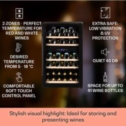 According to the New Energy Label, this wine cellar is in F-class. Compared to the G-class appliances, it reduces consumptions up to 34%, saving energy, money and respecting the environment.