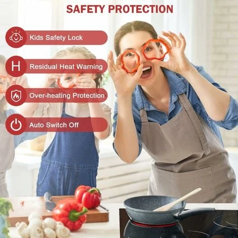 - 【Multiple Functions 】The electric hob is equipped with a child safety lock, timer and overheat protection device, auto shutdown protection, residual heat warning and the round edges without sharp corners; use timers between 0-99 minutes timer as reminders, so you can relax and take it easy. The hob is great for families with children and the elderly