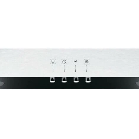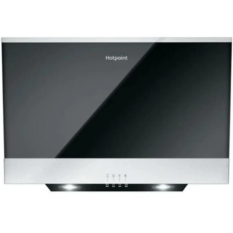 This Hotpoint cooker hood elegantly combines a black glass front with stainless steel accents to create a piece of kitchen art! It has 2 LED downlights to brighten up your cooking station and easy to use push button controls.