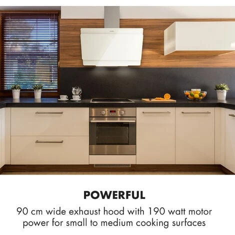 Best air in small to medium-sized kitchens: The Klarstein Aurica 90 cooker bonnet is a powerful show piece. With 190 watts of motor power in three speeds and up to 600 m³/h of exhaust air capacity, it vigorously eliminates steam and fumes while cooking. A switchable light ensures good visibility and the design provides freedom of movement on the cooker. The Klarstein Aurica 90 wall-mounted bonnet is powerful, glass luxury for the kitchen.