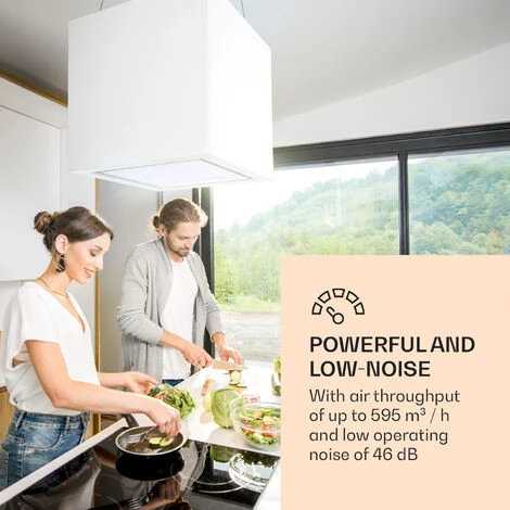 POWERFUL FAN FILTERS ALL FUMES: Across three power levels and a powerful 595m³/h our floating island cooker hoods reduce odours and filter fumes for better air quality. A handy auto-off timer switches the cooker hood off when not in use.