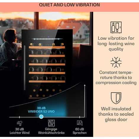 SILENT FOR ADDED AMBIENCE: Thanks to the quiet 39 dB motor and an elegant visual design, our wine cooler fridge is ideal for wine storage in your own home as well as in bar areas, restaurants, tasting rooms or wherever connoisseurs of wine gather.