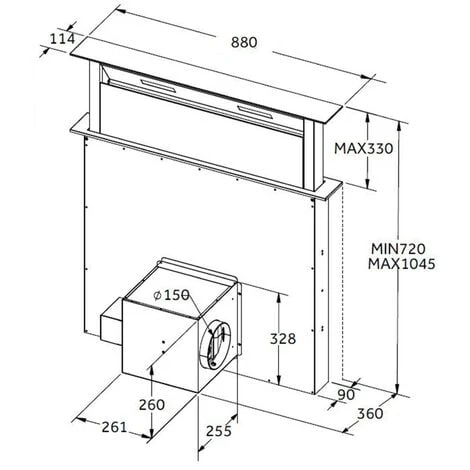 Product dimensions (mm): W880 x D360 x H720 – 1045