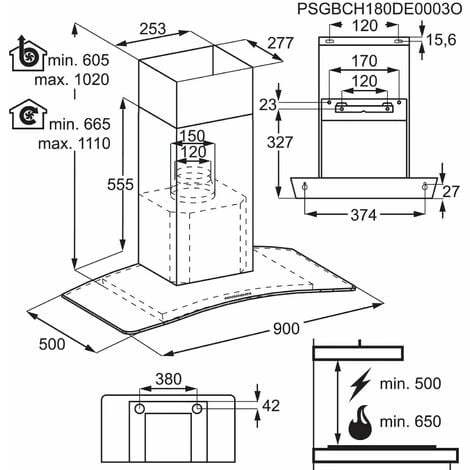 - Air extraction or recirculation possible, if charcoal filter (optional accessory) installed.